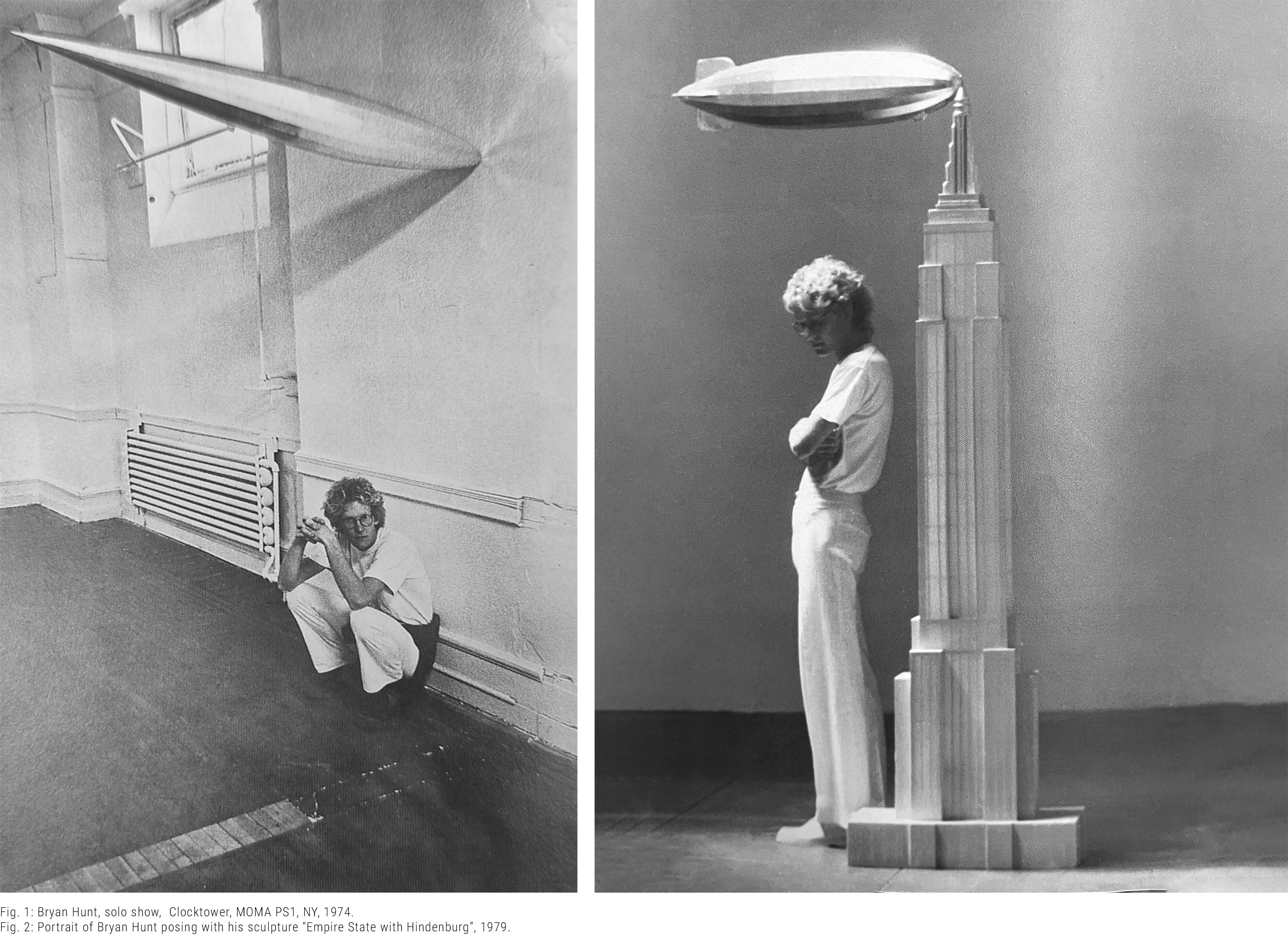 The first of Hunt’s translations of modern spatial concepts into sculptural form was Empire State with Hindenburg (1974) [fig. 4], a striking piece in which a facsimile of the ill-fated zeppelin is tethered to an eight-foot-high replica of the Empire State Building. This work marked a crucial turning point in Hunt’s artistic development, shaping both his conceptual direction and his subsequent projects.