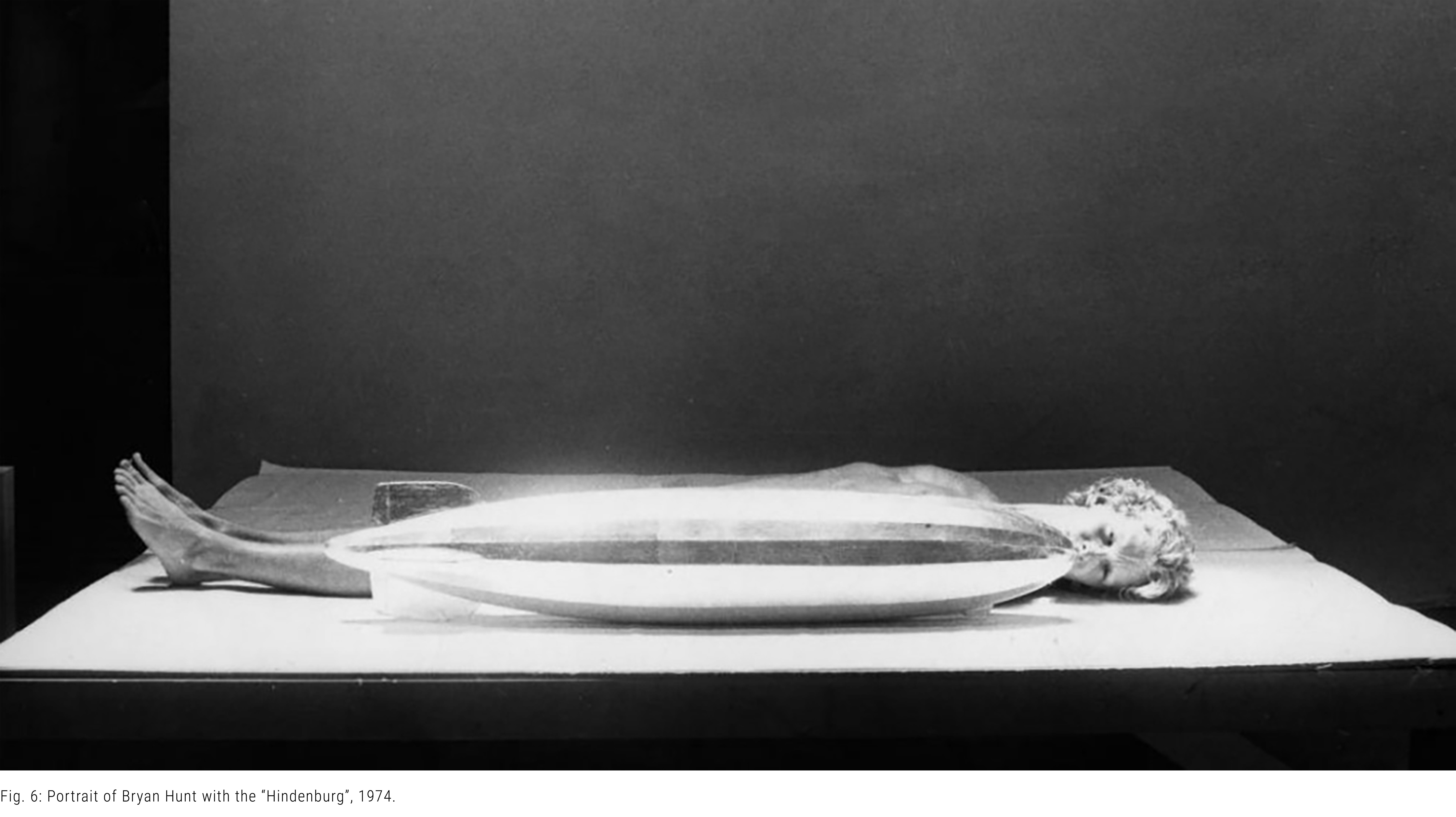 Detaching it from any specific context, Hunt mounted the Airships on the wall. Although out of physical reach, the sculpture remained harmoniously scaled to the human body. From the observer's viewpoint, the implied movement advanced beyond the work and described a large arched line in space. Though Hunt cannot remove the wall, he invites viewers to perceive the airship’s sculptural presence as more dominant than the wall supporting it, effectively transforming the white wall into an unfilled expanse [fig. 21, 22, 23].