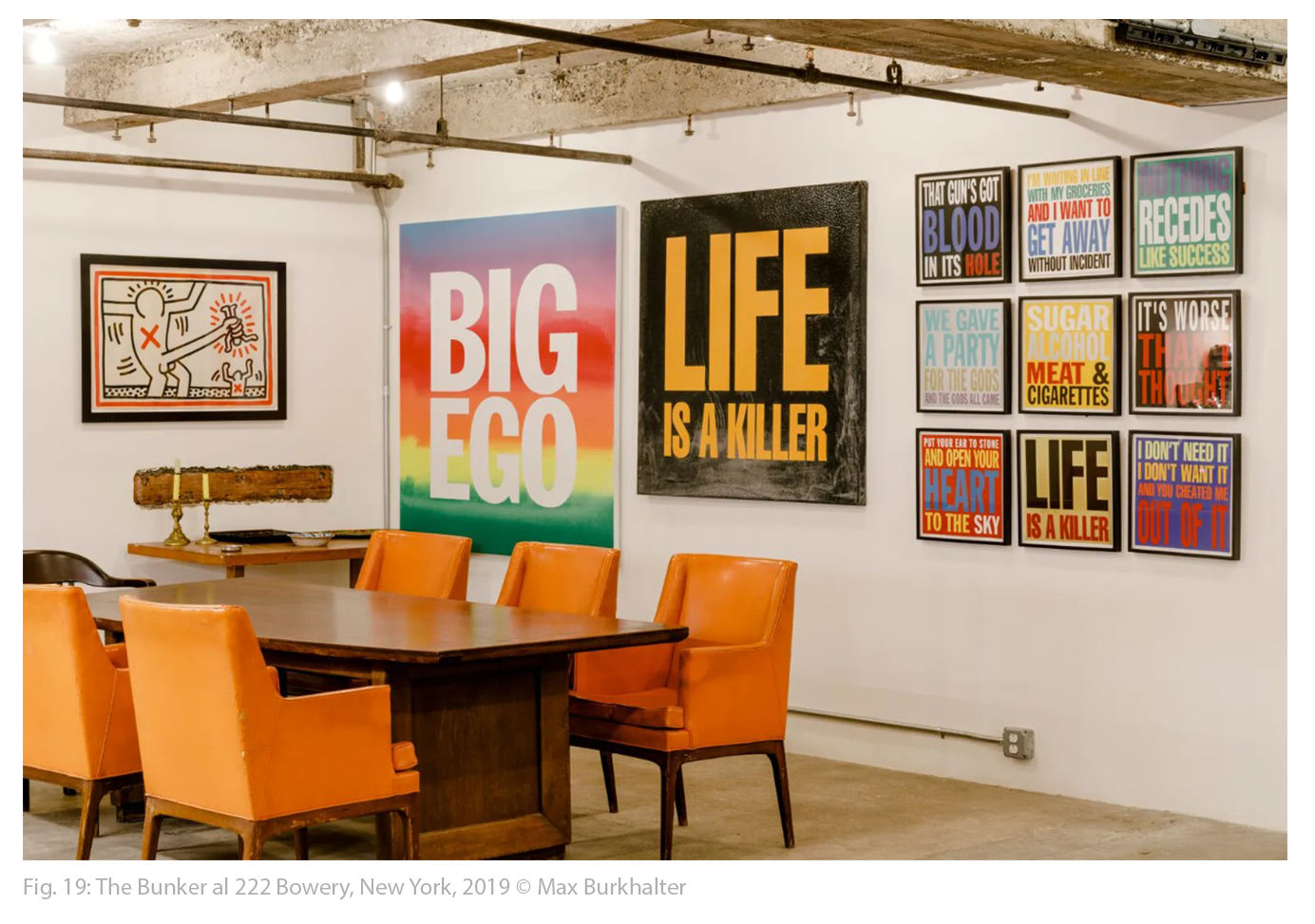 I ♥ John Giorno è stata la prima retrospettiva dedicata a un poeta della controcultura americana degli anni ’60 [fig. 9], concepita da Ugo Rondinone come una vera e propria dichiarazione d’amore e, al tempo stesso, come un’opera d’arte autonoma. “Ho immaginato la mostra in otto capitoli,” ha raccontato Rondinone,“ognuno rappresentante un aspetto dell’opera di John. Nel suo insieme, ha riflesso il suo processo creativo e ha rivelato la doppia influenza della cultura americana e del buddhismo tibetano sulla sua vita e sulla sua arte. I ♥ John Giorno è stata un’immersione totale nel suo universo: nella sua voce, nel suo respiro, nella sua presenza fisica.”