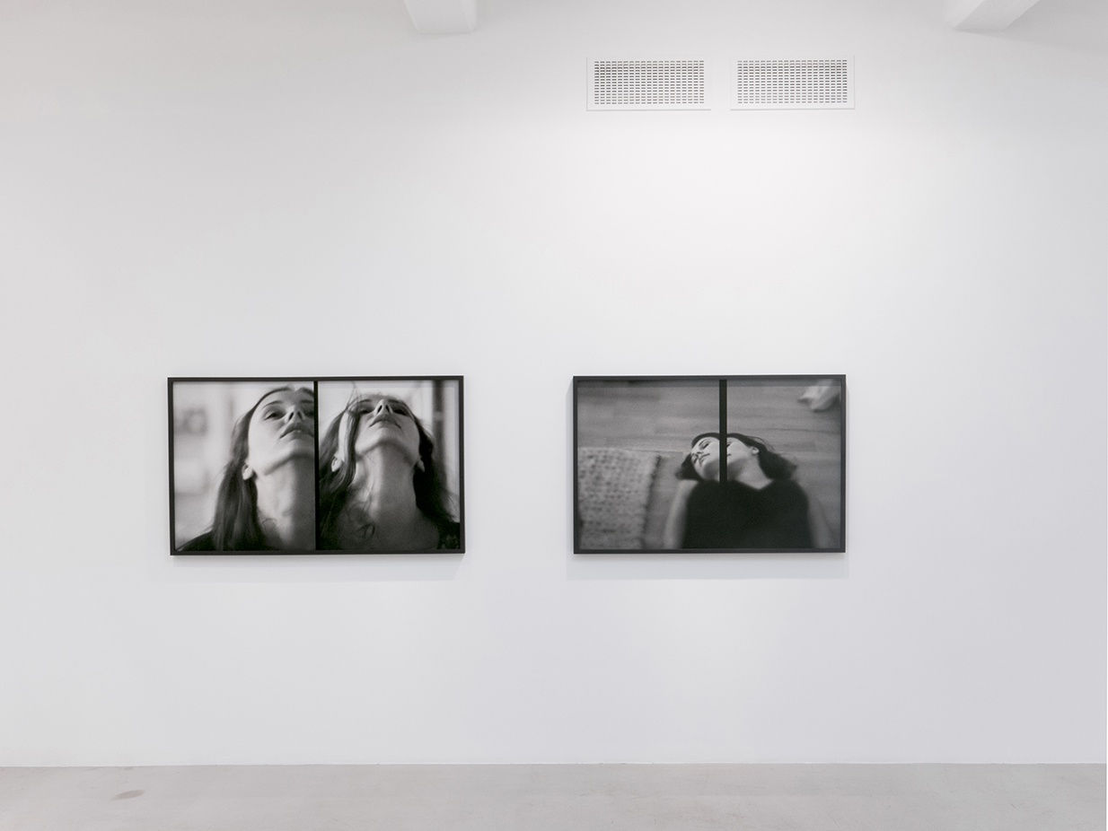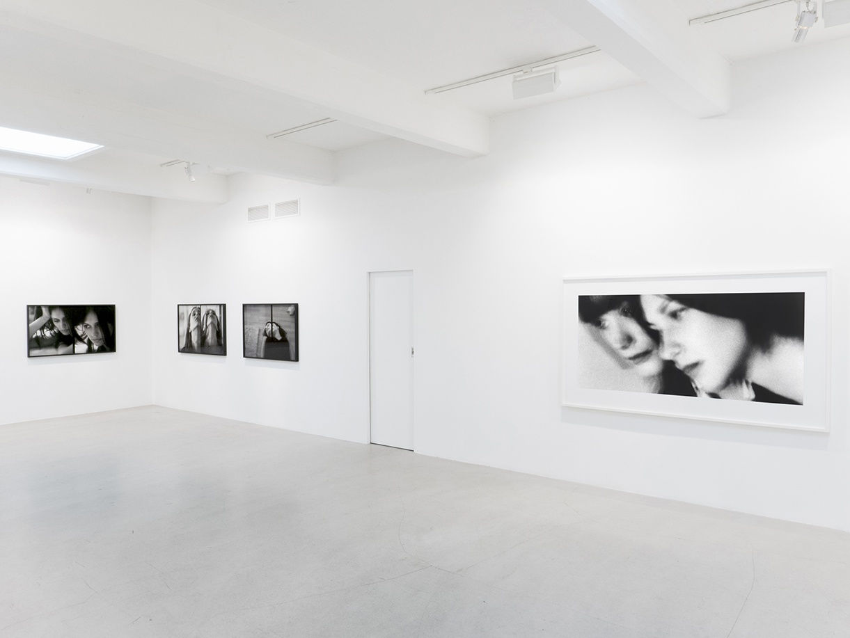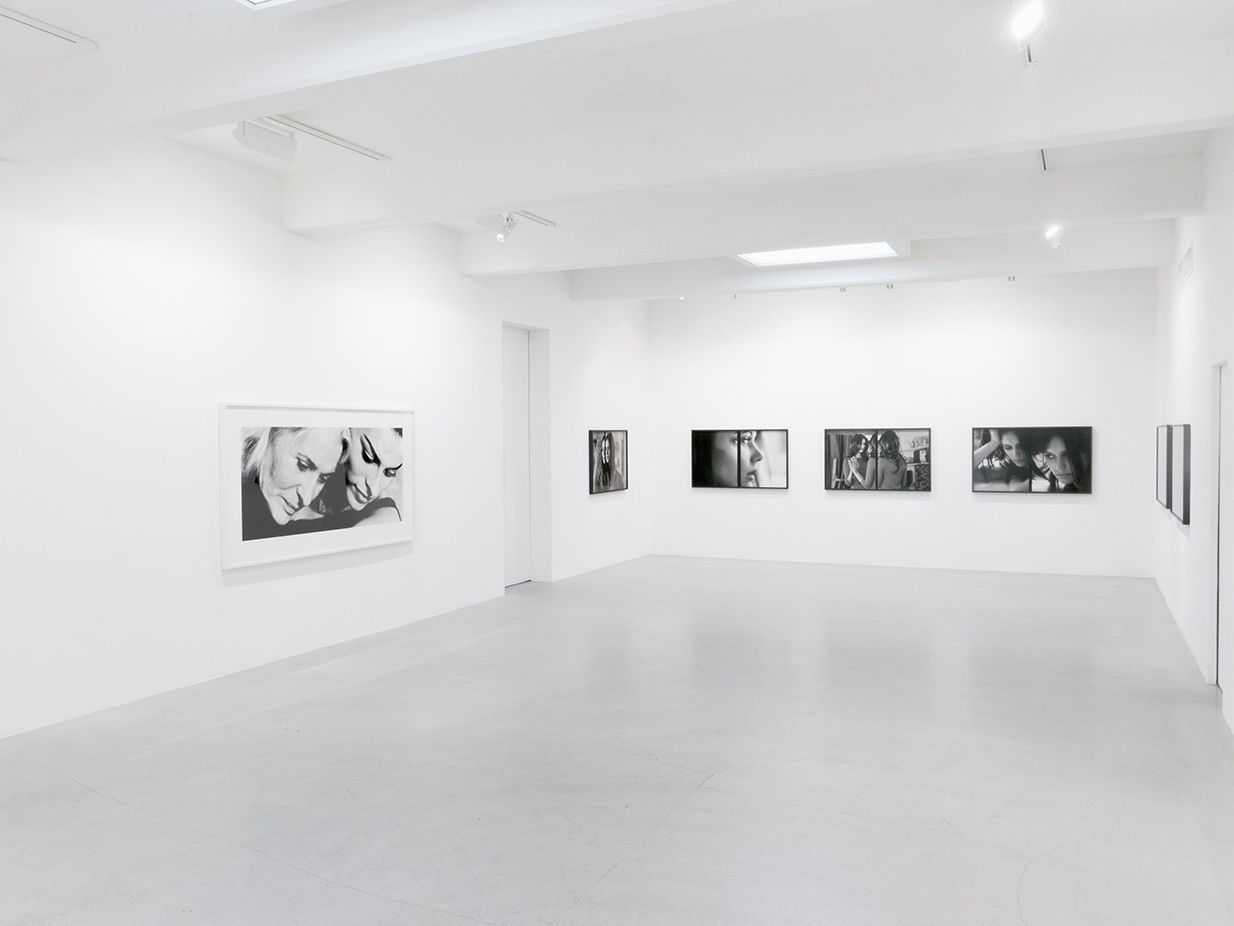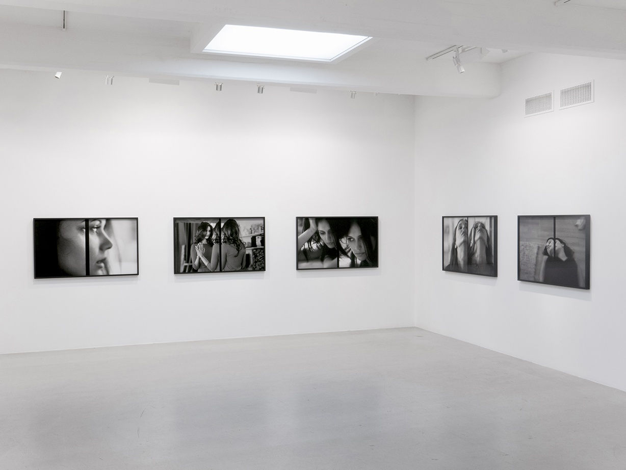 In the gallery Samore arranges a selection of pictures from his latest series Accumulation of Shapes (Part Two), 2015 and from his early best-known series Allegories of Beauty (Incomplete), 1990s - which together provide insights and contrasts into his provocative body of work. As a third aspect of this survey project, he bridges his meditation on the interplay of cinema and painting by screening a selection of short films: Compendium of Perplexities, 2011; Glossary of Delusions, 2010 and Archipelago of Enigmas, 2012. The three films form a triptych, even if they are intended as autonomous works. We follow different characters in non-linear and dreamlike sequences recognizable from Samore’s oeuvre. Allegories of Beauty (Incomplete), originating in the 1990s, solidified his unique and now instantly recognizable visual language: cinematic, grainy, large scale black and white photographs of the faces of individuals in various psychological states of the beautiful, the disenchanted and other representations of the discontinuous self. Samore’s pictures resemble stills from an imaginary movie, hypnotically elusive, triggering the unconscious – where his characters play upon our projections, obsessions, longings and fears. Erogenous and fetishized zones of the body have also been important to Samore’s pursuits, and the exhibition features a picture of lips from this group of works Allegories of Beauty (Incomplete). His fundamental sensibility runs through the latest trilogy Accumulation of Shapes, but Samore chooses for the first time to create his dismantling of singular methods of storytelling by concentrating on one actress. Each picture features the same individual in an enigmatic scenario, and is composed of two seemingly different frames of the same scene - cut up, then linked together, but separated by a vertical black line. This rupture of the “realistic” picture plane creates time fragmentation and fluctuating spatial perspectives – referencing the Jump Cut and Synthetic Cubism. He continues to deploy blurred focus and large grain to further advance his ideas of psychological, spatial and thematic dislocation. Samore touches upon one of the most difficult philosophical challenges in post-modern discourse where the ”self" is no longer a given, or clearly defined. Characteristic of Samore’s whole oeuvre is the mesmerizing quality of his works, which compels the viewer to look longer, to want more. It's hard to let go of these scenarios, which are a masterfully technical and conceptual hybrid of film, photography and painting.